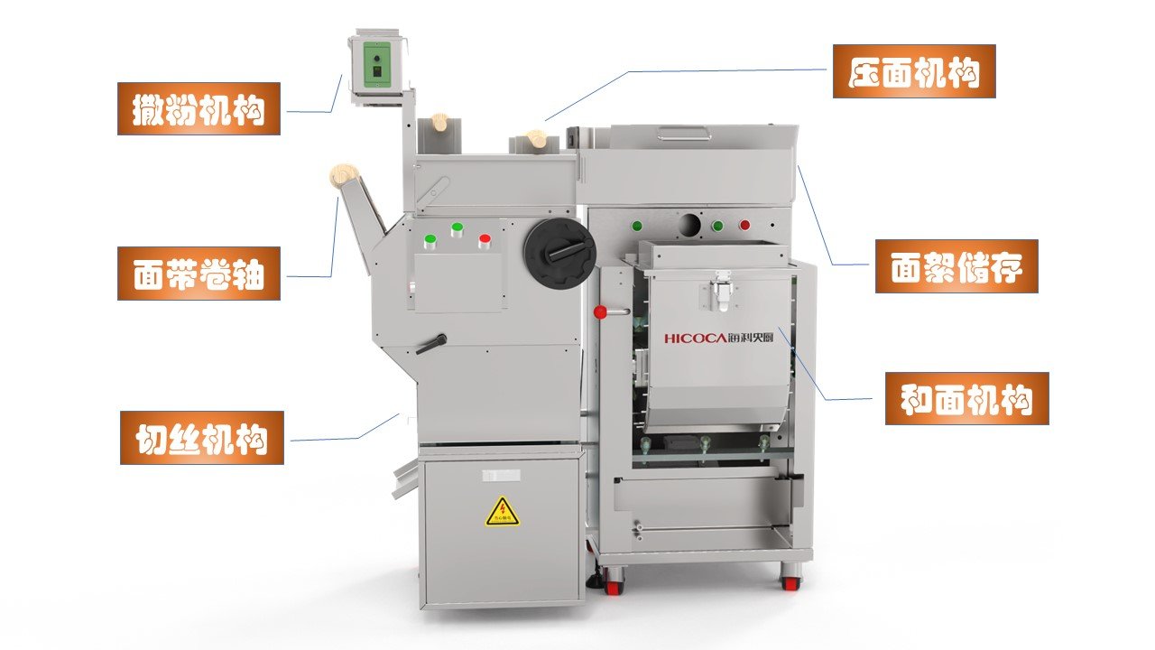 ??萍逊律鸀醵鏅C高度集成、占地面積僅需1㎡,簡單易操、效率高、每小時可制面300份,是真正的“一平方”制面坊。
