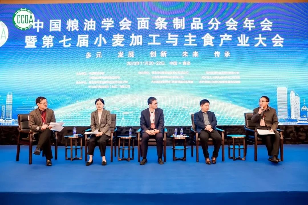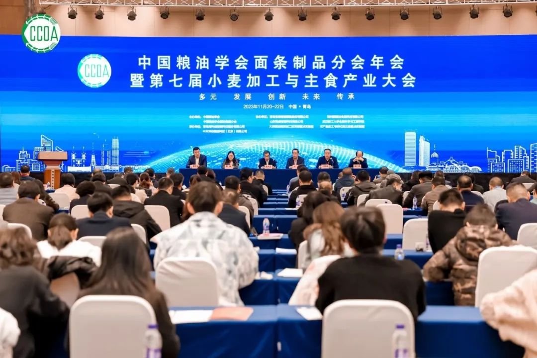 1121日,中國(guó)糧油學(xué)會(huì)面條制品分會(huì)年會(huì)暨第七屆小麥加工與主食產(chǎn)業(yè)大會(huì)在青島召開,本次大會(huì)由中國(guó)糧油學(xué)會(huì)面條制品分會(huì)主辦,青島??萍阎悄芸萍脊煞萦邢薰境修k,以“多元 發(fā)展 創(chuàng)新 未來(lái) 傳承”為主題,匯聚了來(lái)自全國(guó)的300余名知名專家學(xué)者,企業(yè)家、學(xué)生代表展開對(duì)話交流。