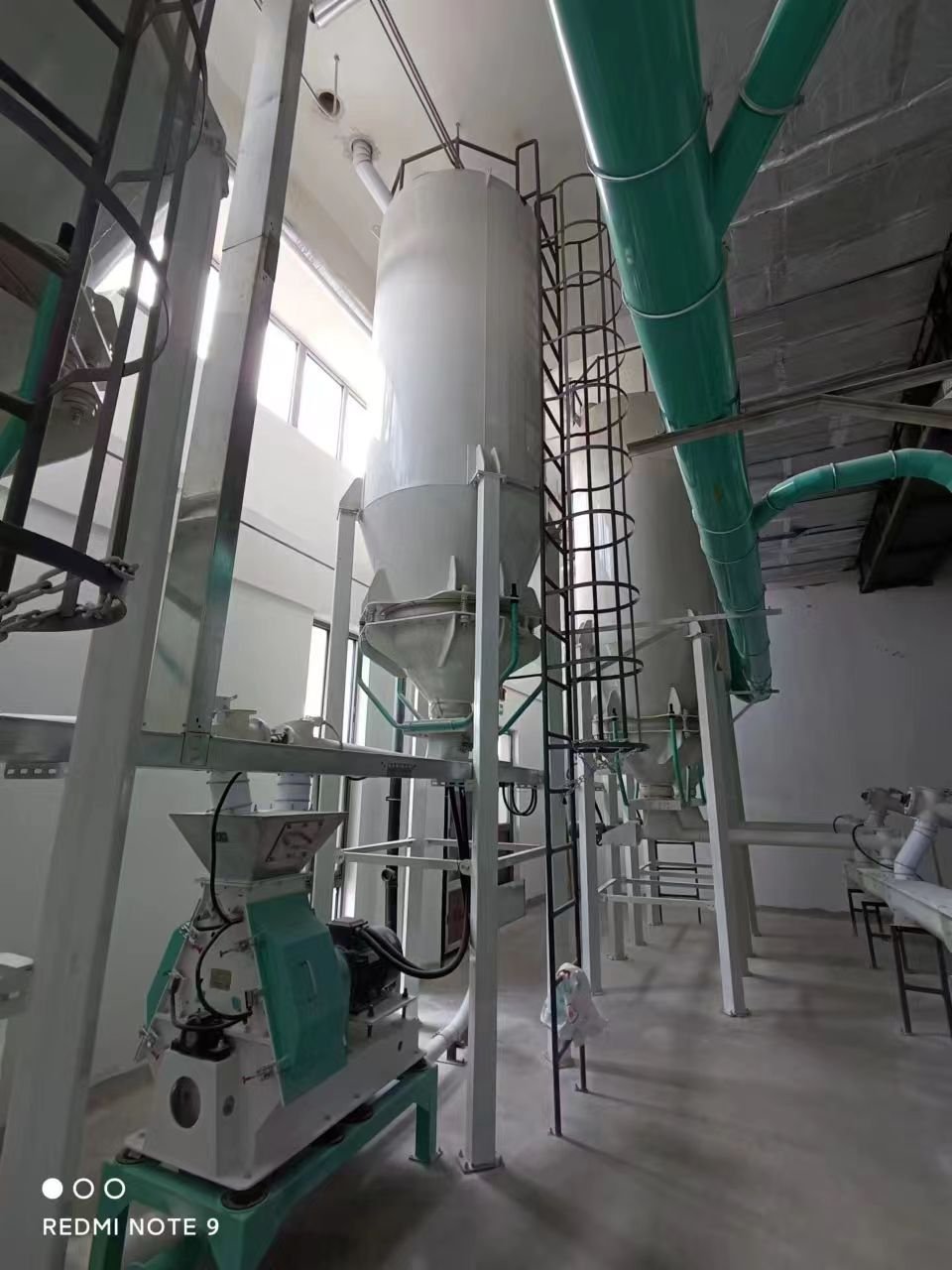 通過正壓輸送管道從面粉廠粉罐區域輸送至掛面面粉倉內。車間配備1套5噸噸容量的面粉倉,用于暫存面粉。車間配備1個2噸容量的碎頭粉倉及1個2噸碎頭倉,各倉底部設置氣錘和絞龍,通過絞龍的轉動頻率控制供粉的流量(絞龍調試時需進行標定);所有絞龍匯集至1臺槳葉式混合絞龍內,在物料的輸送過程中實現混合?;旌虾蟮奈锪辖涍^提升機,輸送至粉體壓松機進入減重稱,然后至和面鍋內備用。