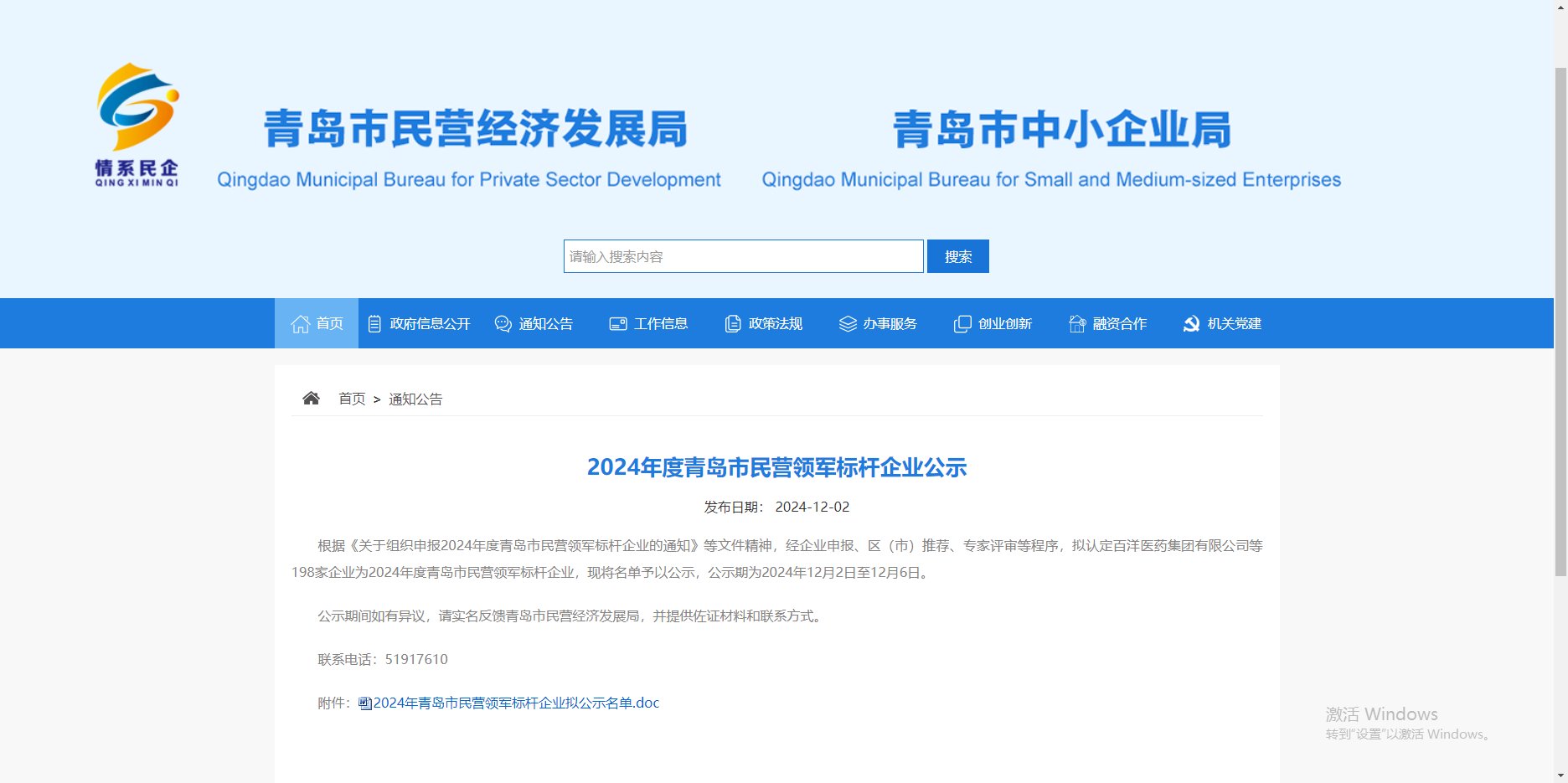 為加快創建具有全球競爭力的世界一流企業,打造民營經濟高質量發展標桿示范,近年來,青島市民營經濟局大力實施民營領軍標桿企業培育行動,連續兩年組織開展青島市民營領軍標桿企業評選。民營領軍標桿評選更重視企業的行業引領作用,從行業地位、經營規模、管理制度、創新發展等方面對企業進行綜合評價。入選2024年度青島市民營領軍標桿的企業,來自農業、制造業、服務業、建筑業等各行業,具有技術創新能力較強、增長勢頭猛、擁有自主知識產權與核心技術、品牌度較高、擁有較大市場占有率和對社會貢獻比較大等鮮明特點,是領軍作用突出、行業優勢明顯、核心競爭力強的民營龍頭企業。